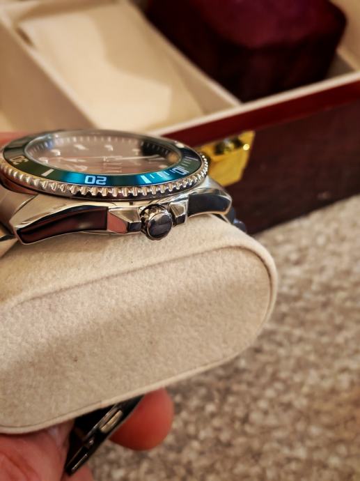 Sa originalnim crnim gumenim remenom, dodatno zeleno-crni nato strap, zeleni silikonski i na njemu čelični President remen sa leptir kopčom.