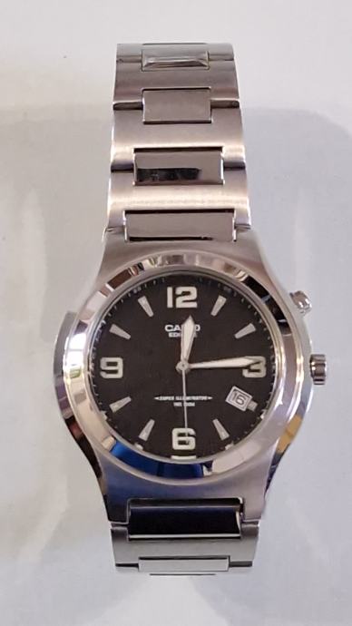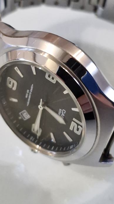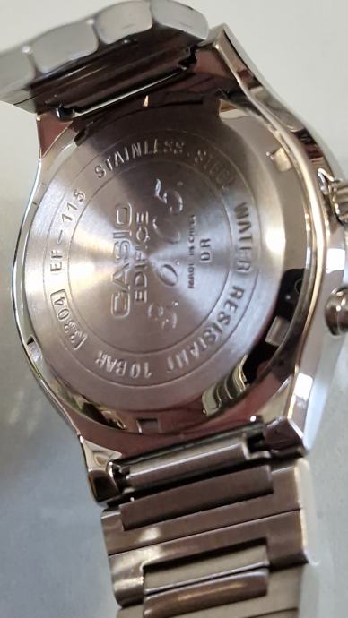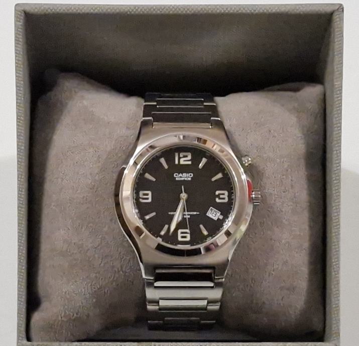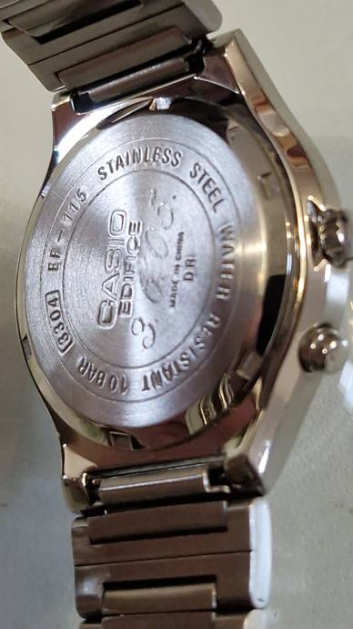Prodajem vintage elegantan muški sat Casio Edifice EF-115D s modulom 3304. Sat je svega par puta malo nošen (dobiven za obljetnicu) i dugi niz godina nalazio se pospremljen u kutiji. Sat je izrađen od kvalitetnog čelika s crnim brojčanikom i istaknutim brojevima, ovaj sat je pravi spoj sportskog i poslovnog stila. Metalna narukvica je čvrsta i udobna za nošenje, a na kopči narukvice je ugravirana posveta TŽV Gredelj.