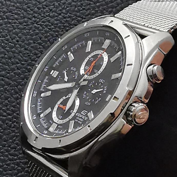 KEYWORDS: casio, edifice, ef-328, 3725, quartz, japan movt, wr100m, stainless steel, muski sat, analogni sat, mesh narukvica, milanese, srebrni sat, crni brojcanik, sportski sat, casual sat, multi dial, day date, month, 24h