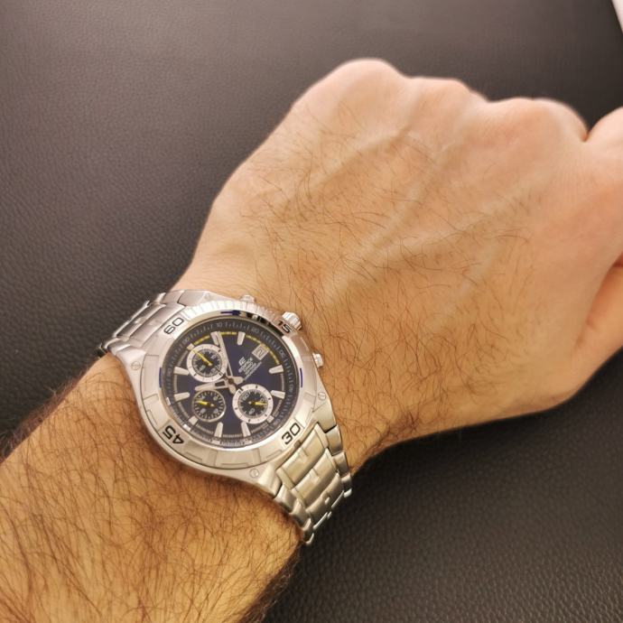 Prodajem Casio Edifice EF-520 kronograf na metalnoj narukvici, dobar sat za svakodnevno nošenje i sportskiji stil.