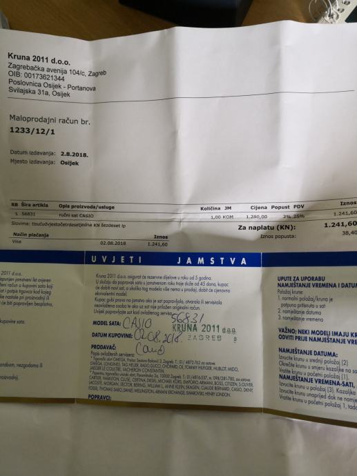Prodajem Casio muški sat,original,kupljen 2.8.2018.,garancija na sat i bateriju do 2.8.2020.,vodootporan do 100 m(kupanje,tuširanje,ronjenje),u super stanju!Moguća dostava za Osijek i okolicu ili slanje poštom!