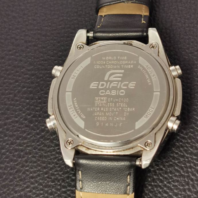 Keywords: Casio, Edifice, EFV-C100, wristwatch, ana-digi, quartz, world time, chronograph, countdown timer, alarm, WR 100m, stainless steel, black dial, black strap