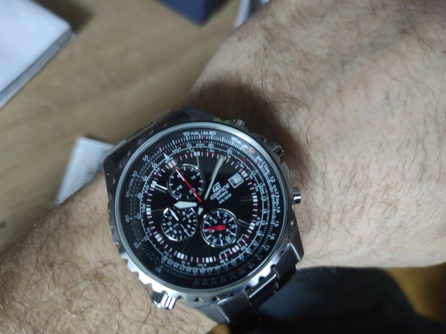 Navedeni sat, sa kutijom, korišten, uz minorne tragove korištenja prodajem. Sat ima štopericu do 12 sati, i logaritamsko računalo koje omogućuje brzinske operacije množenja i dijeljenja, razne konverzije veličina (npr.euri u kune, galone u litre,itd.),računanje vremena putovanja,prosječne potrošnje i slično. Precizan je na razini od 2-3 sekunde mjesečno. Metalna narukvica ima skinute 2 karike, koje dolaze sa satom.