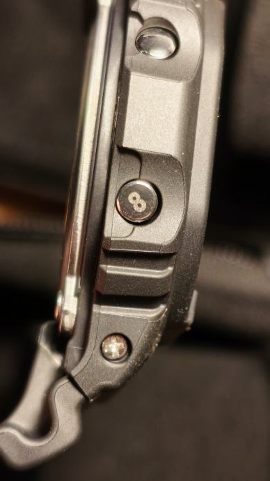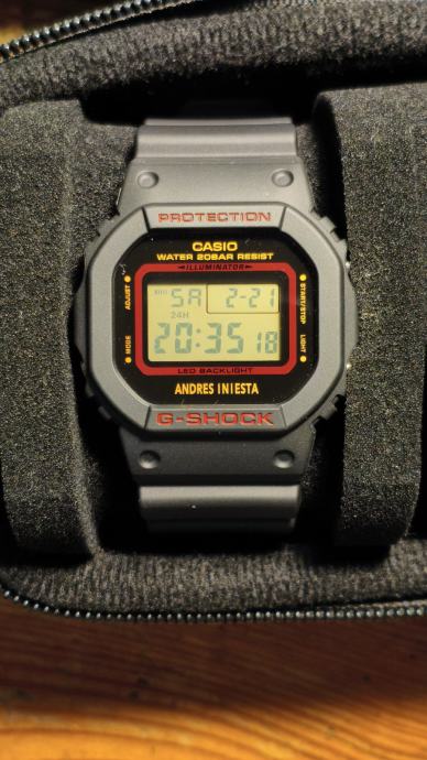 Broj 8 ugraviran u gumb (MODE). Iniestin potpis ugraviran u poklopac sata.