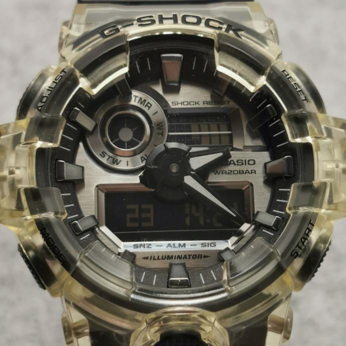 KEYWORDS: casio, g-shock, gshock, GA-700, GA-700SK, 5522, shock resist, WR200, 200m, 20bar, analog digital, illuminator, skeleton, transparent, clear, smoke, sports watch, mens watch, black, casio watch