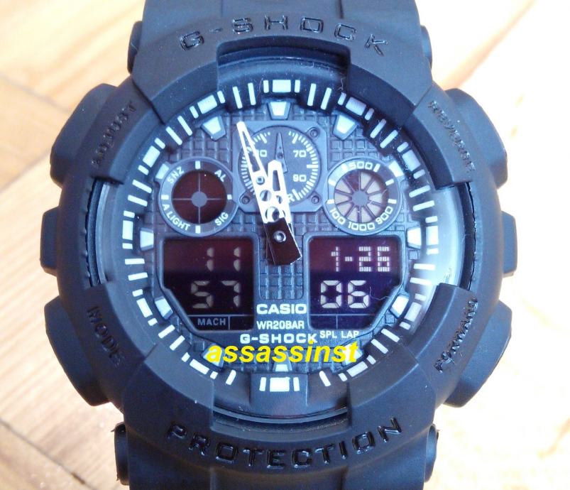 Potpuno nov Casio G-Shock GA 1A1 sat, replika, identičan kao i original. Sat je potpuno nov, nekorišten i s folijom preko stakla. Namješten na točno vrijeme i datum. Kada se namjesti digitalno vrijeme na satu, analogne kazaljke se okreću i namještaju se točno da prate zadano digitalno vrijeme.