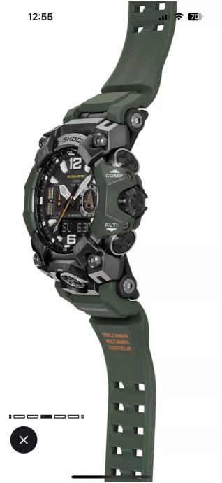 Casio G-Shock Mudmaster GWG 1000-3AER dolazi, kao što očekujemo od linije, s izradom koja omogućuje satu da izdrži čak i najteže uvjete. Izuzetan je u otpornosti na vodu, blato, prašinu, niske temperature i udare. Opremljen je nizom osnovnih funkcija važnih za boravak u prirodi – kompas, termometar, barometar, visinomjer. Imaju kombinirani analogni i digitalni brojčanik koji prikazuje datum, dan u tjednu, štopericu, alarm i mnoge druge funkcije koje ćete koristiti posebno na otvorenom, uključujući kompas, visinomjer s dometom od -700 do 10.000 m, barometar s mogućnošću registracije tlaka od 260 do 1100 hPa, termometar koji mjeri na skali od -10 do 60°C i informacije povezane s korištenjem ovih funkcija.