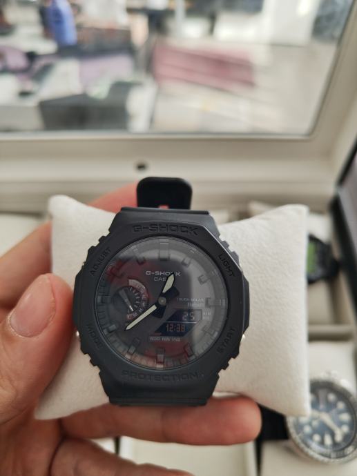 Prodajem rabljeni Casio G-Shock GA-B2100 sat u crnoj boji. Radi se o popularnom ana-digi modelu s karakterističnim oktagonalnim kućištem koje kombinira analogni i digitalni prikaz vremena. Narukvica i kućište su u potpunosti crne boje, što mu daje čist i moderan izgled.