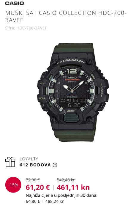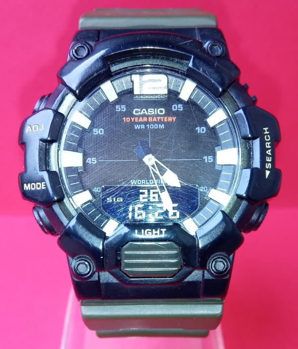 Prodajem muški analogno digitalni ručni sat marke Casio,model HDC-700,modul 5565. Sat je nošen i korišten. Potpuno ispravan i funkcionalan. Stanje vidljivo na slikama.