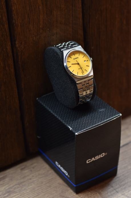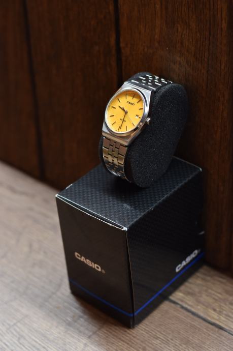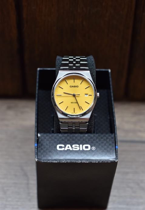 Prodajem novi Casio MTP-B145D-9AVEF sat s atraktivnim žutim brojčanikom i metalnom narukvicom. Dolazi s originalnim računom i garancijom, potpuno nov i nekorišten. Elegantan muški sat koji je savršen za svakodnevno nošenje.