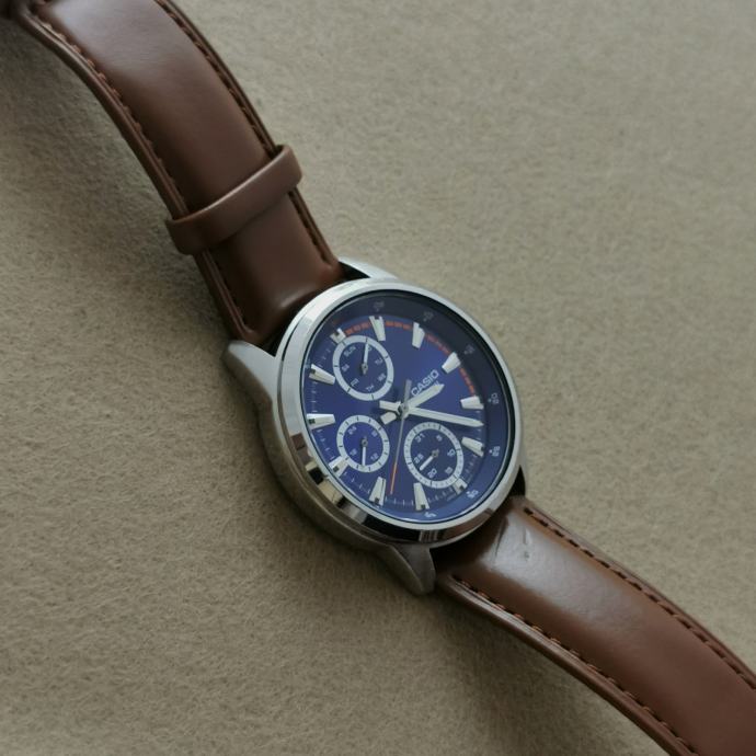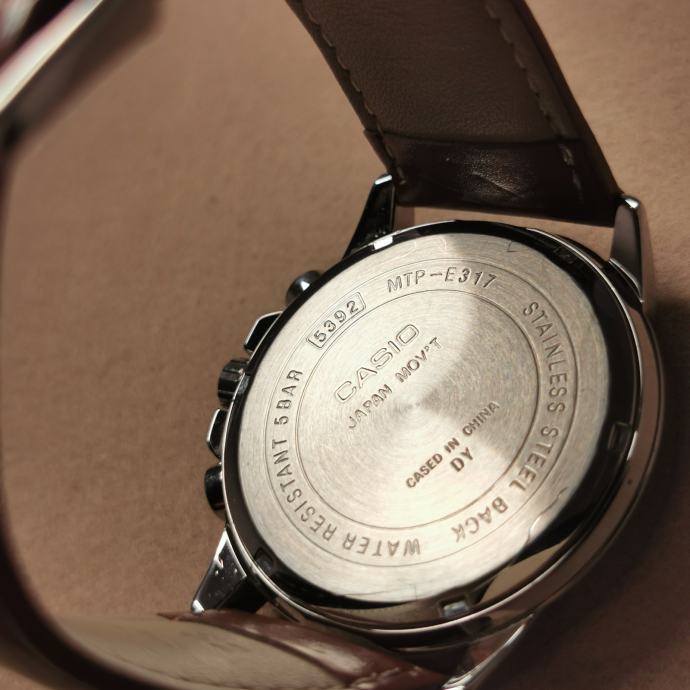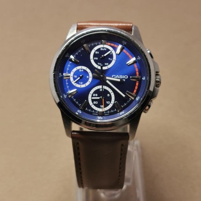 KEYWORDS: Casio, MTP-E317, MTP E317, 5392, muški sat, kvarc, plavi brojčanik, 40mm, 50m, 5bar, day, date, 24h, dress watch, smeđi remen, analogni sat, Casio MTP, vodootporan, Japan movt, stainless steel back