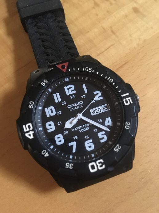 Sat je ispravan. Nova baterija. Promjer kućišta 42,5 mm. Silikonski remen. Vodootpornost 100 m.