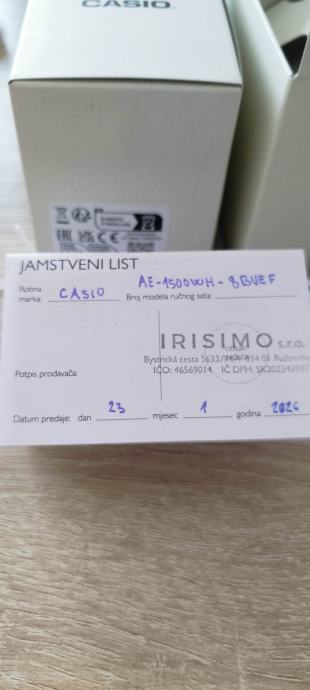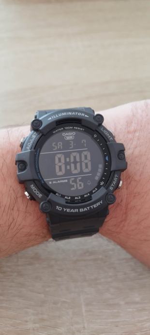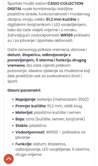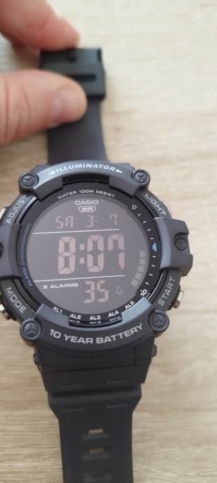 Prodajem Casio muški digitalni sat, model AE-1500, nov s etiketom. Radi se o robusnom digitalnom satu crne boje s gumenom narukvicom. Sat dolazi s nizom praktičnih funkcija, uključujući 5 alarma, Illuminator pozadinsko osvjetljenje, kronograf te otpornost na vodu do 100 metara. Jedna od istaknutijih karakteristika je baterija s vijekom trajanja do 10 godina, što ga čini pouzdanim za svakodnevno nošenje.