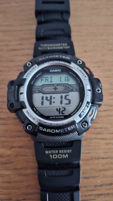 Termometar, barometar, visinomjer, alarm(5), kronograf, svjetlo itd, nova baterija, nova original narukvica, cijena fixna.