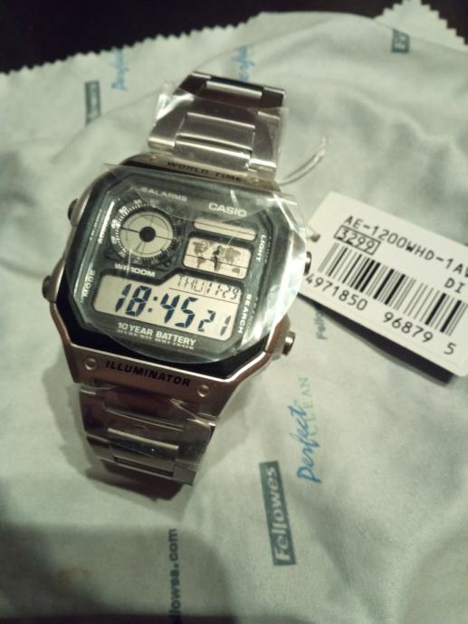 Posve novi legendarni Casio, metalno kučište i remen, vodootporan 100m, štoperica, alarm, svjetsko vrijeme.