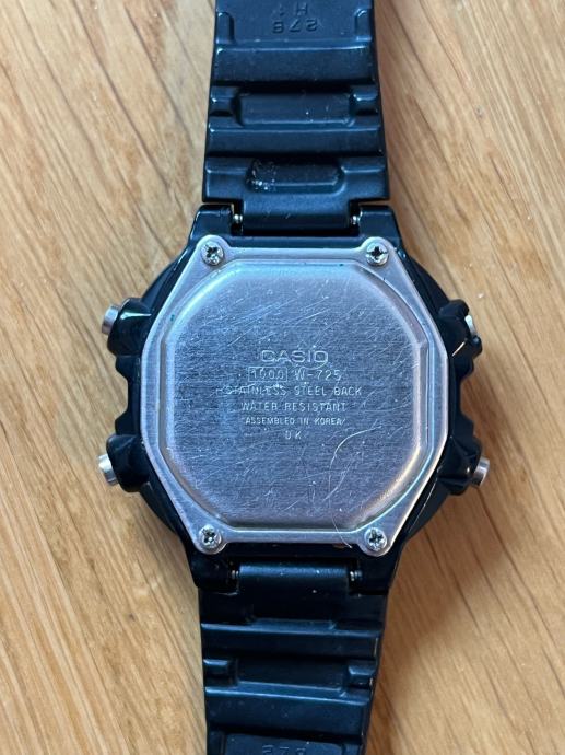 Prodajem Casio W-725 retro ručni sat. Ispravan, ni potrebna je nova baterija koja košta nekoliko eura. Tragovi korištenja vidljivi na slikama, bez oštećenja.