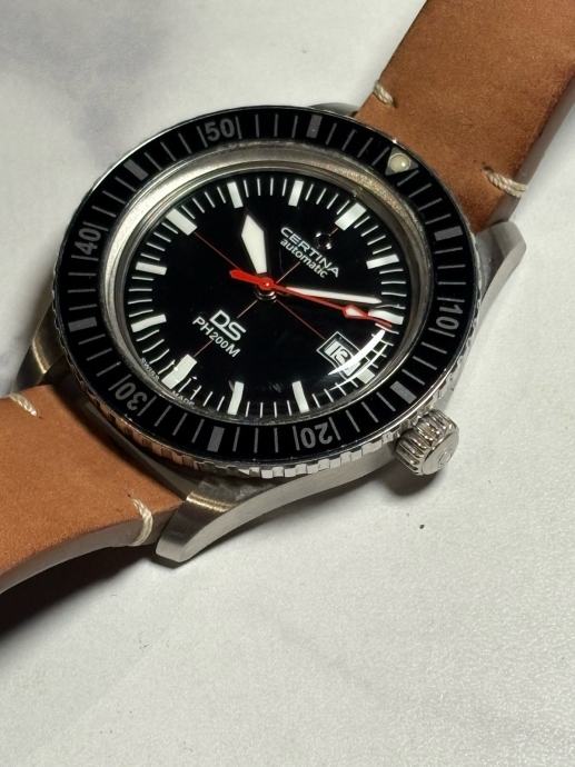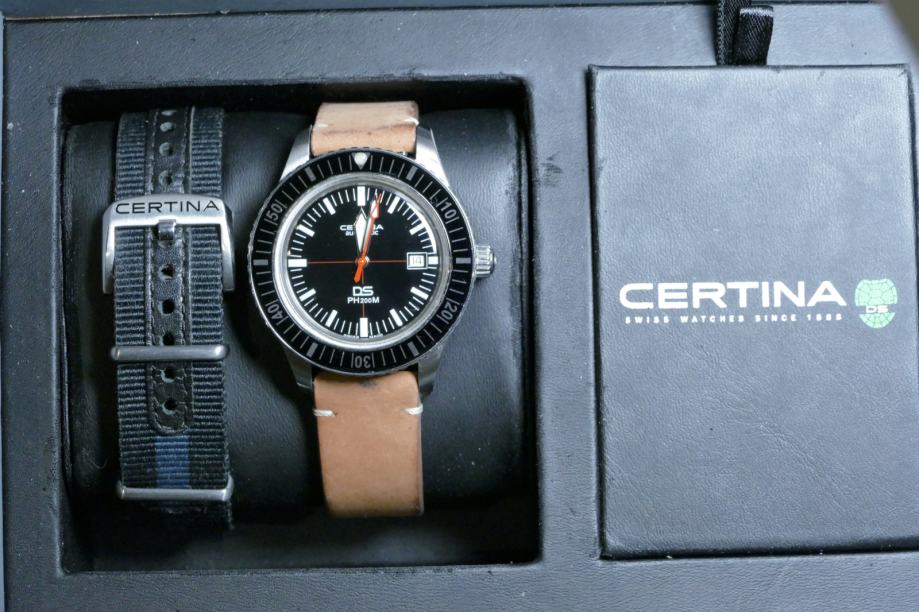Izvrsna Certina PH200m, kao nova. Kompletan set. Kupljena 2018. Retro diver. Vodootporan 200m. Automatik powermatic80 mehanizam. Navojna kruna. Automatik s ručnim navijanjem. Original kožna i original nato narukvica. Svi satovi su iz moje kolekcije, i svima sam prvi ili drugi vlasnik. Popust za kupnju više satova. Zamjene samo ako uzmete 2 ili više mojih satova za vaš skuplji, ili nudite vaš sat i doplatu. Cijena ovog sata je fiksna.