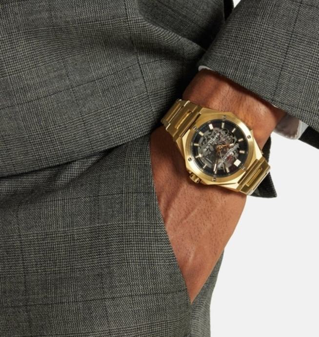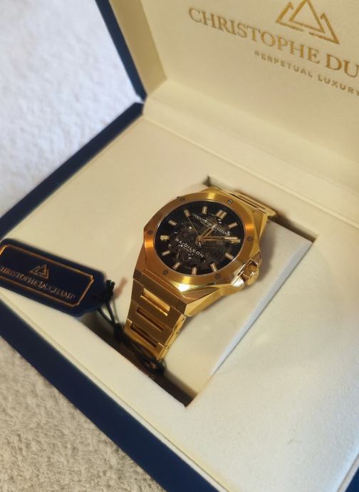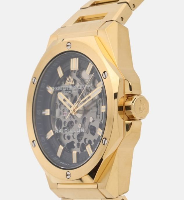 Elegantni automatski sat Christophe Duchamp Raidillon Skeleton II u zlatnoj boji.
