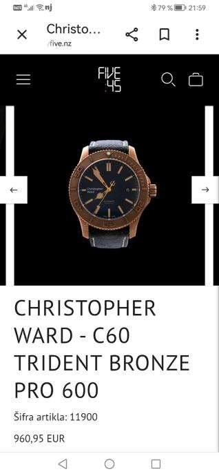 Diver's sat Christopher ward c60 trident 600 pro bronze automatic saphir staklo vodootpornost 600 m izrađen od bronze sa papirima i kutijom takoreći nov. Mogućnost zamjene za novi Honor magic pro mobitel