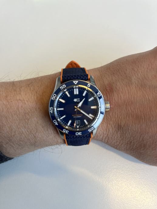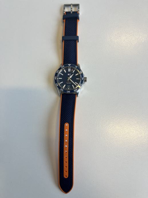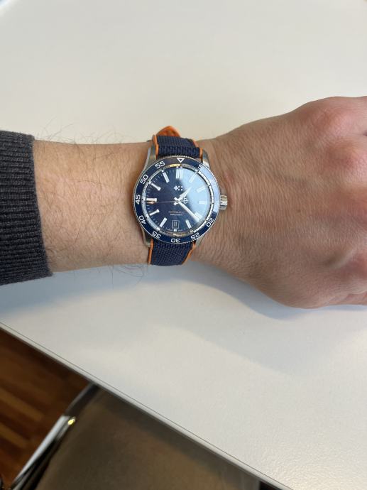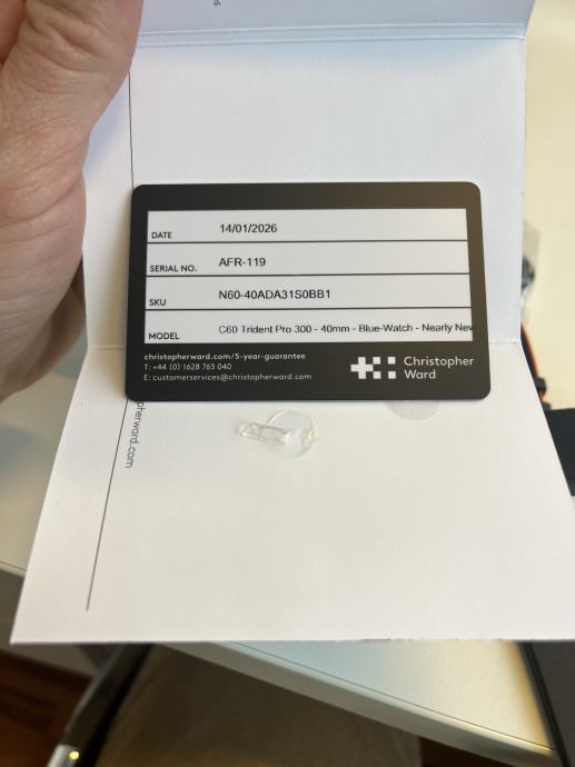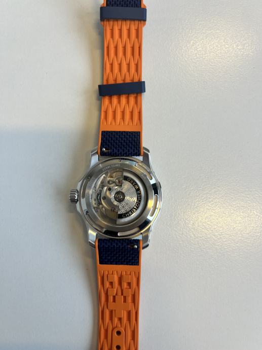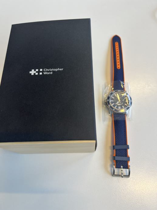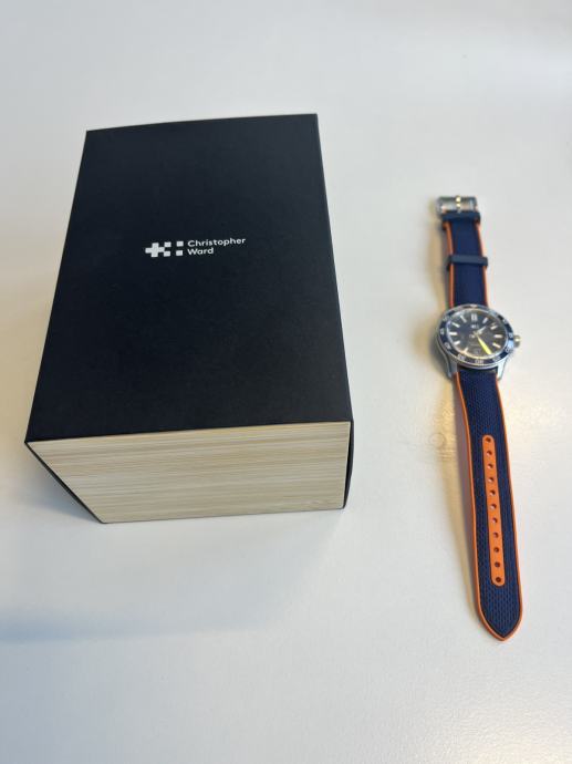 Na prodaju Christopher Ward C60 Trident Pro 300 kupljen 01/2026, garancija vrijedi do 10/27. stanje 10 od 10, bez tragova nošenja. Tanje i lakše kućište u odnosu na prethodne generacije– tanji i lakši na zapešću. Veći indeksi s povećanim lumenom i brojčanik koji prikazuje logotip. Veličine 40 mm kućišta plave boje – s remenom za brzo otpuštanje. Otvorena stražnja strana kućišta omogućuje vam da vidite Sellitin SW200-1 mehanizam – i vodootpornost do 300 m.