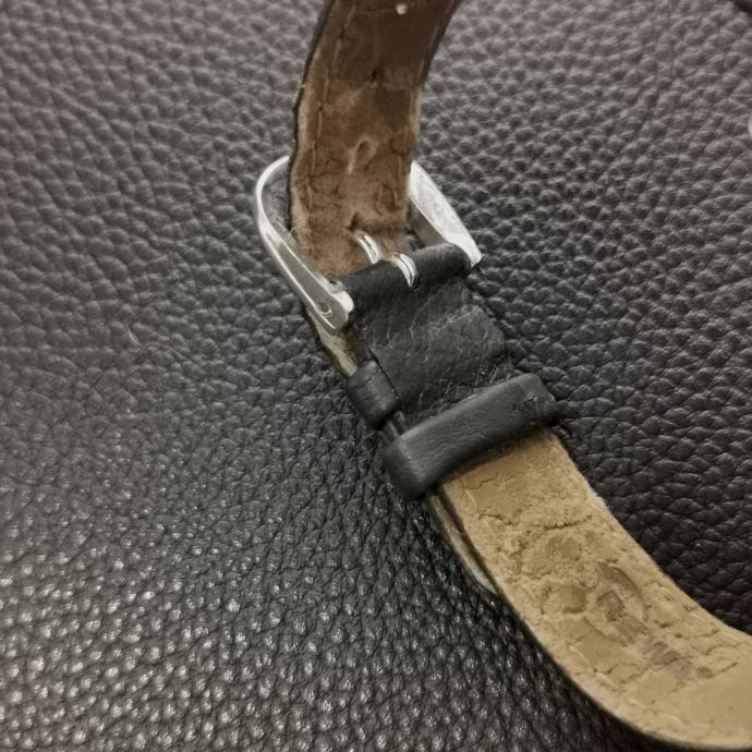 Narukvica/remen: crni kožni remen; širina 18 mm (otisnuto “18”); kopča s oznakom “REWA”
