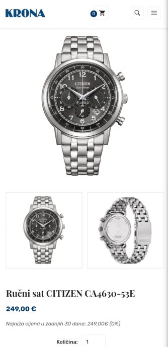 Prodajem ručni sat CITIZEN Eco Drive CA4630-53E novi model, u super stanju sa svim papirima i garancijom 18 mjeseci. Novi vrijedi 250 eura. Ima sitne, ali zanemarive crtice na kopči, uživo se ne primijeti toliko kolko na slici. Moguća dostava Zagreb i okolica.