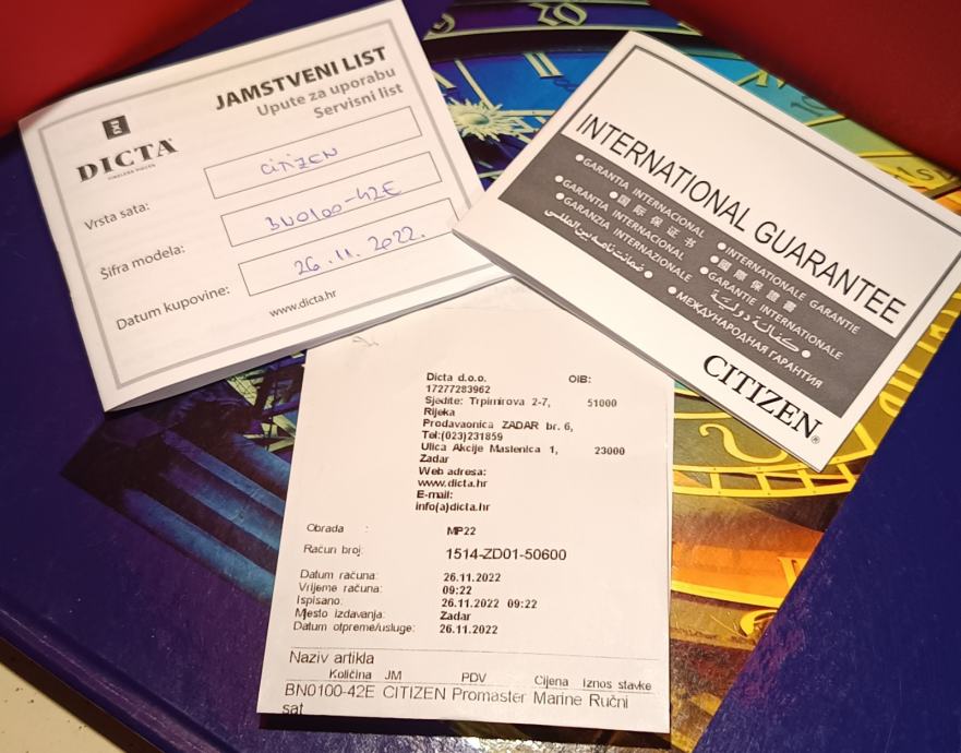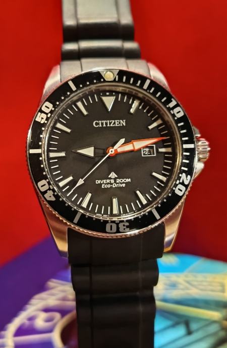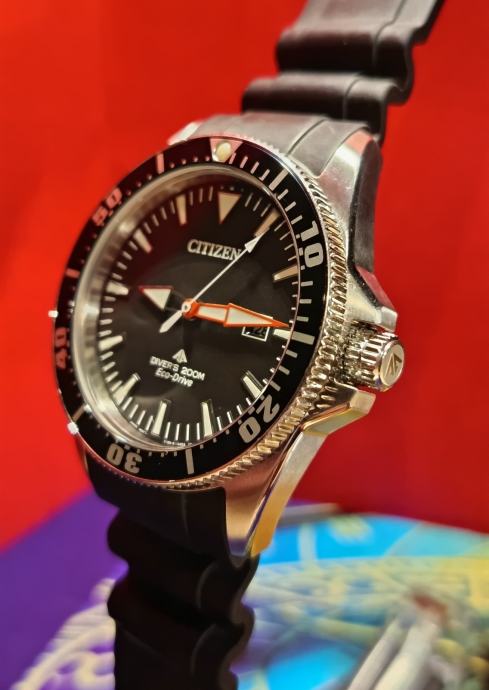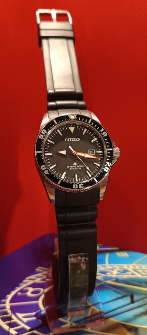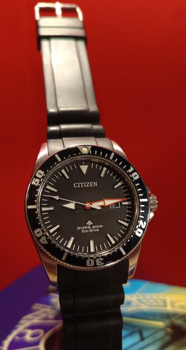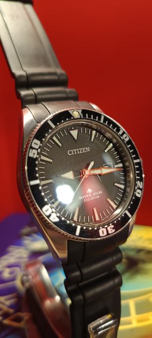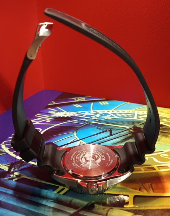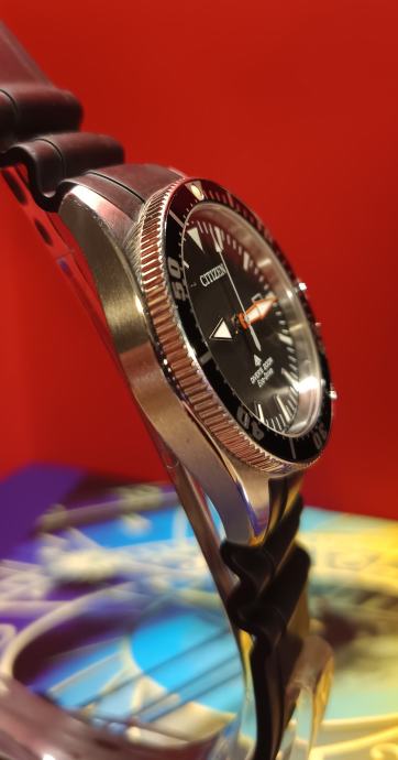 Prodajem odličan originalan klasičan muški sat Citizen Promaster Diver Eco-Drive 200m BN0100-42E iz moje osobne kolekcije. Sat je povremeno nošen i nema većih znakova,osim jedne crtice na staklu koja se slabo primjeti(vidljivo na slici) i par hairline crtica na kučištu i kopči. Sat je u odličnom stanju,potpuno funkcionalan,i dolazi zajedno sa originalnim kutijama, dokumentacijom i računom.