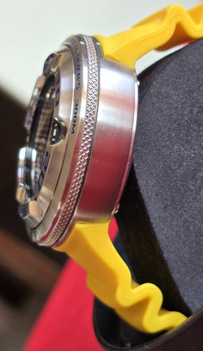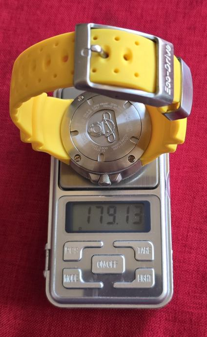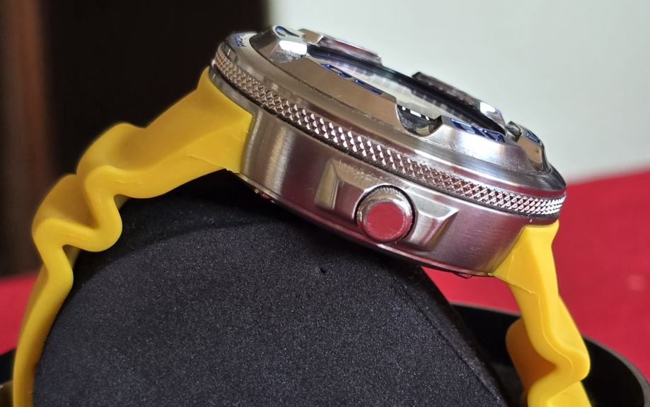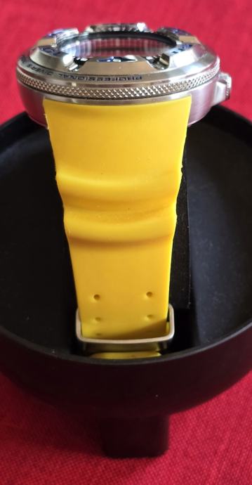 Dolazi sa originalnom kutijom koja je kao ronilačka boca i sa produžetkom remena u žutoj boji koji omogućuje postavljanje sata na ruku preko ronilačkog odijela.