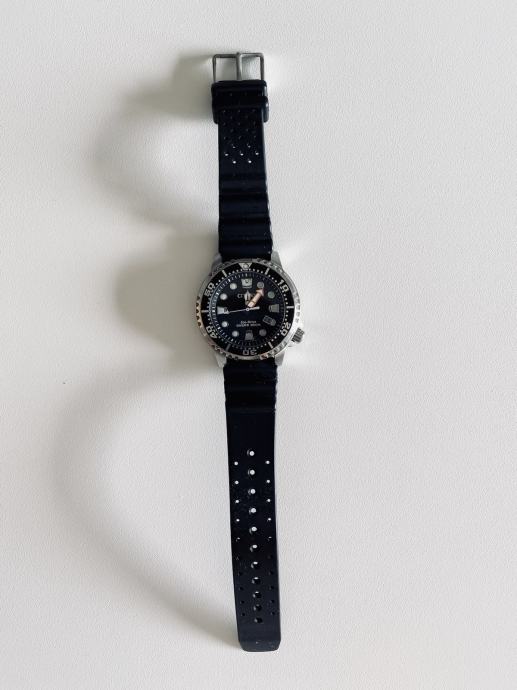 Prodajem muški citizen promaster marine sat, promjera 44mm, debljine 12mm, ronilački sat vodootpornosti do 200 m, eco-drive, krunica i poklopac na navoj, kupljen 9.2021. s garancijom u trajanju od 24 mjeseca. Dodatno poklanjam kožni remen marke Ringke.