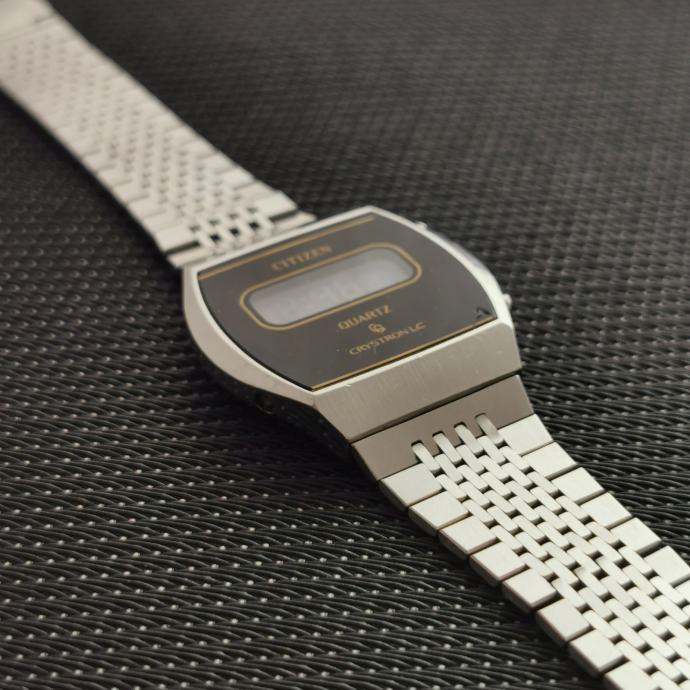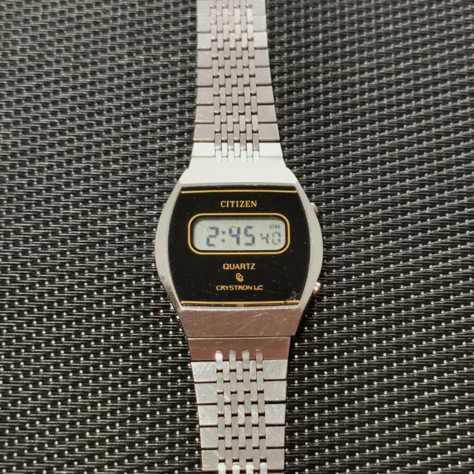 KEYWORDS: Citizen, Crystron, Crystron LC, Quartz, digitalni sat, vintage, retro, japan, stainless steel, čelik, metalna narukvica, 32mm, unisex, kolekcionarski, LCD, classic, 70s, 80s, Citizen box, original