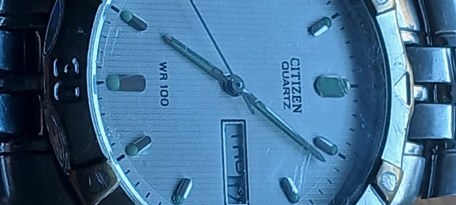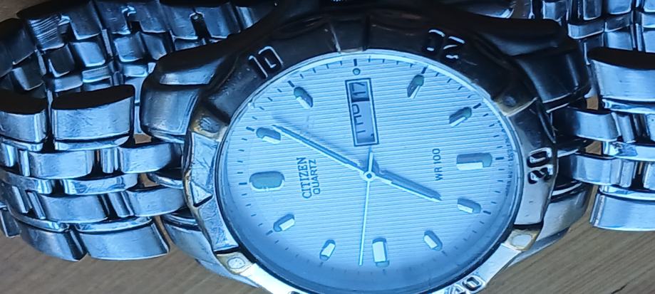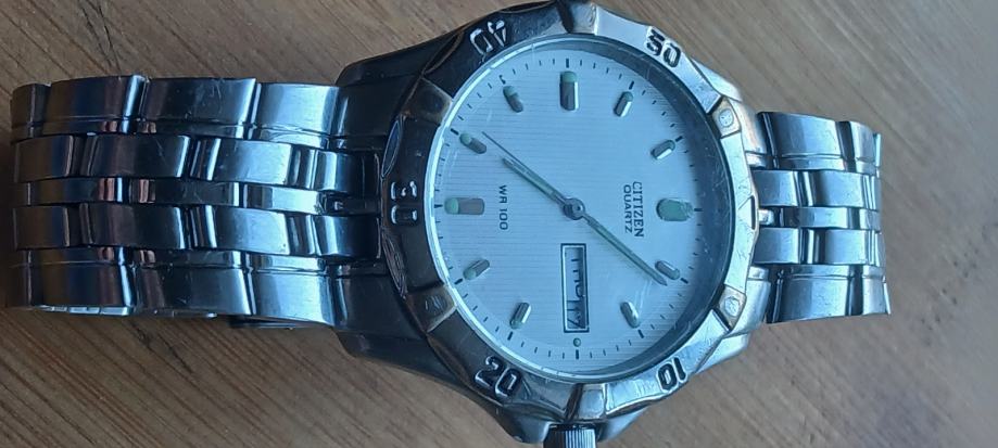 Citizen dan i datum muski analogni sat ispravan i tocan sve uredno prebacuje.Kuciste promjera 37 mm,oeginalna narukvica,nova baterija.