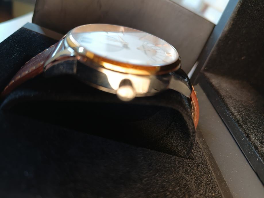 Claude Bernard 34004 37R AIR je izuzetno elegantan sat koji se ističe zbog svog jedinstvenog rasporeda i ružičastog premaza. Veliki datum je u 6 sati i postoji dnevna kazaljka na 12 . Naravno, sat ima odličan švicarski kvarc mehanizam i safirno staklo. Nenošen-