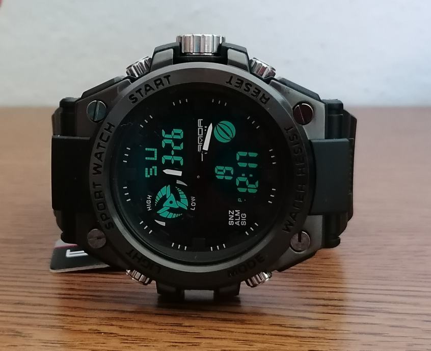Funkcije: Sat digitalni i analogni, kalendar, Štoperica, alarm, pozadinsko osvjetljenje.