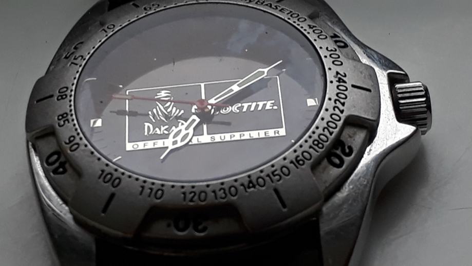 Dakar Loctite sat službenog dobavljača.Ispravan i sačuvan analogni sat promjera 40 mm,rotirajuča luneta staklo bez ogrebotina,nova baterija novi kožni remen.spreman za nošenje.šaljem pošta,tisak,njuškalo
