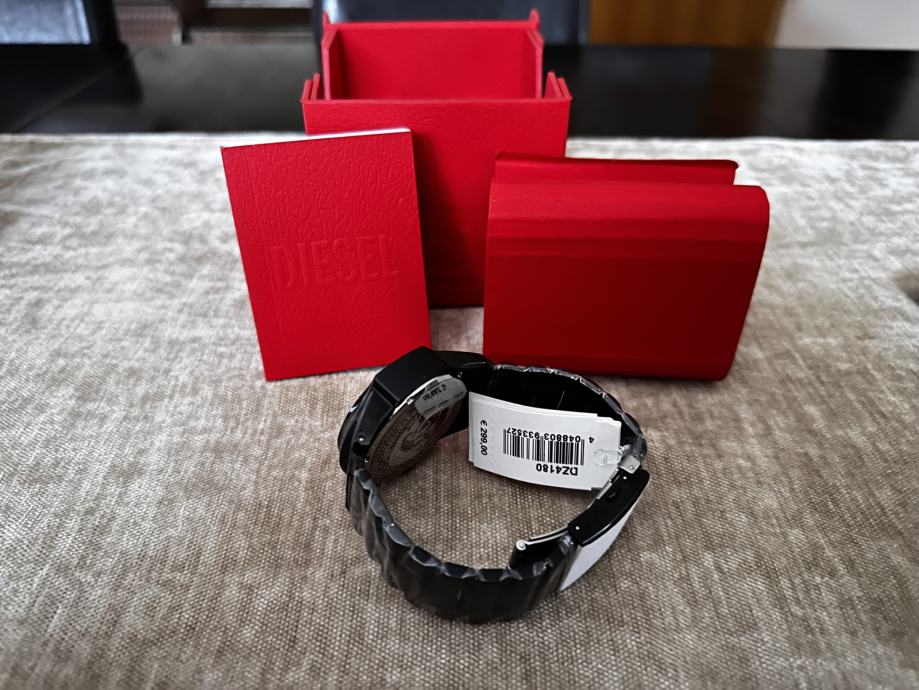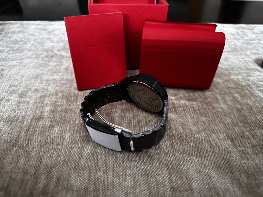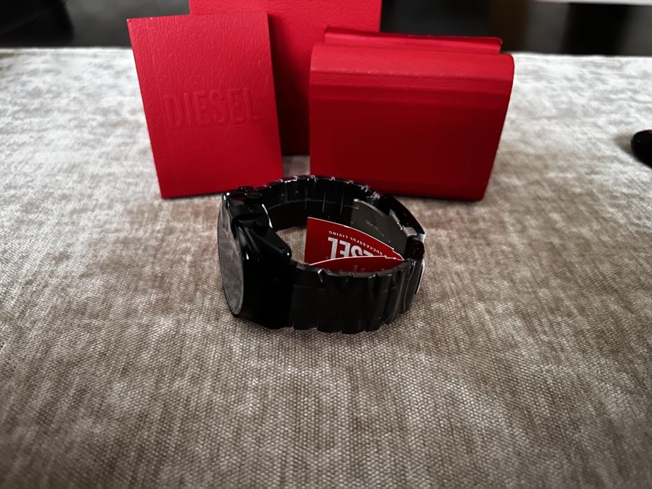Novi muski sat Diesel. Jos uvijek etiketa i folije na satu. Uz sat dolazi i kutija.
