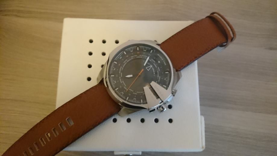 - kožni remen, mineralno staklo (otporno na ogrebotine), čelik vrhunske kvalitete i obrade (Stainless Steel). Osim vremena, sat prikazuje datum ali i vrijeme u svjetskim gradovima. Ovaj model sata je iz "Mega Chief" kolekcije što znači da je nešto većih dimenzija - promjer sata je 53 mm a debljina 16 mm pa to svakako imajte na umu prilikom kupovine. Navedene dimenzije su i razlog prodaje jer je meni ovaj sat nažalost prevelik.