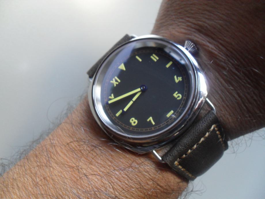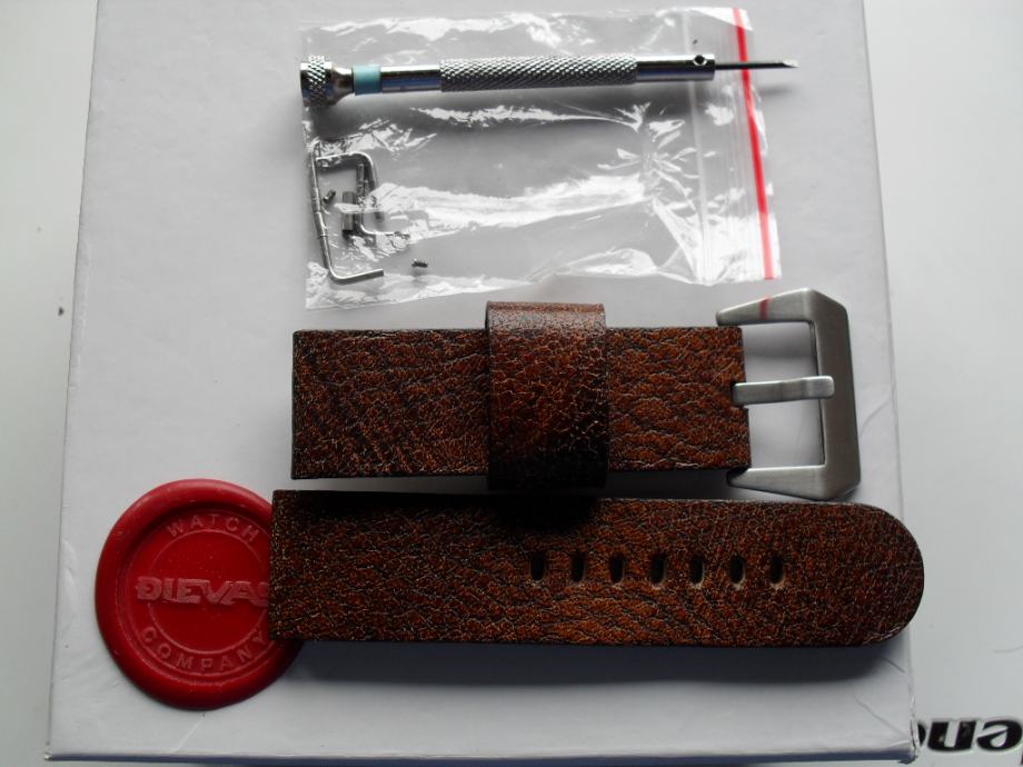 kože (Avirex, janjeća). Sat je u odličnom stanju, normalni tragovi nošenja. Obadvije kutije (u nešto lošijem stanju), kartica, odvijač, rezervni wire lugs i vijci. Uz sat dolazi i nenošeni 26 mm Panatime Gold Grain Historic Vintage remen.