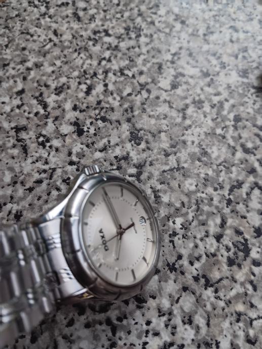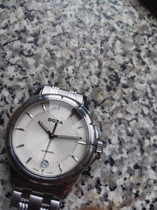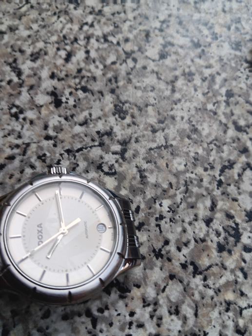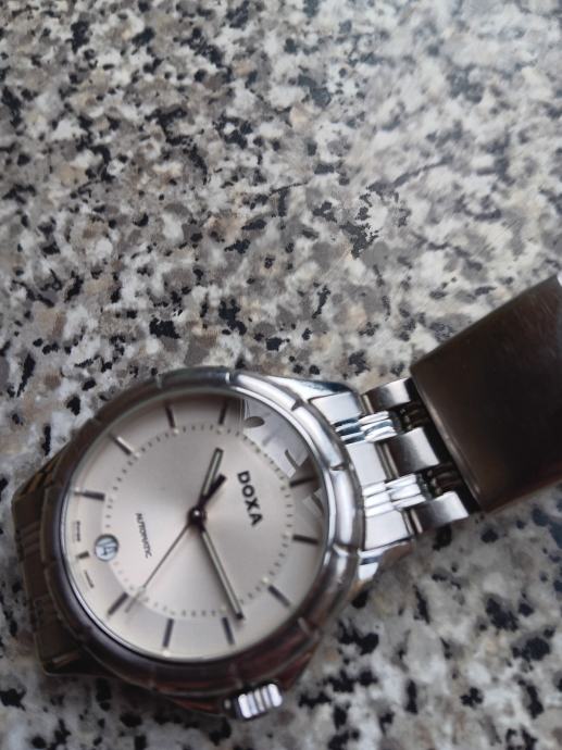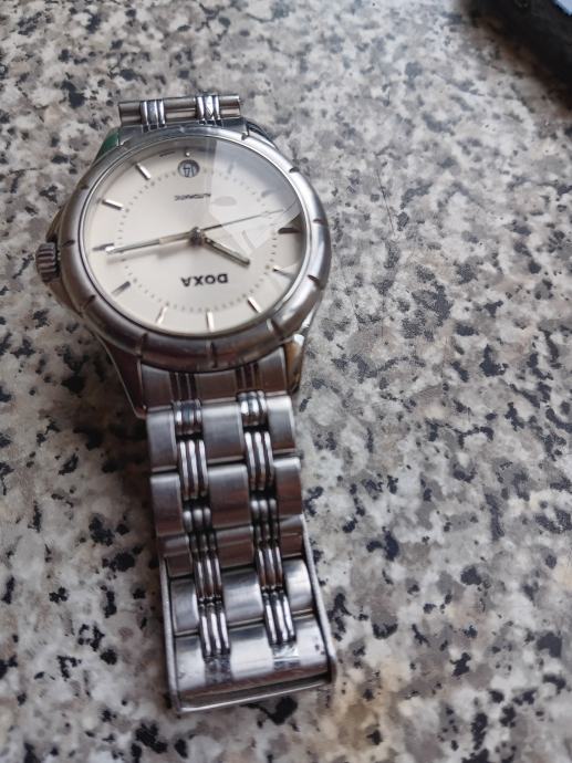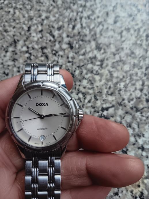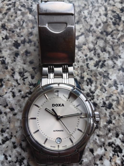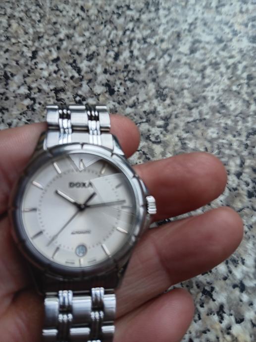Doxa automatic što znači da se navija pokretom ruke. Klasični stil s metaknim kucištem i narukvicom od nehrđajuceg čelika. Prikaz datuma na poziciji 6 sati bijeli brojčanik. Mehanizam ETA 2836-2 40mm. Super sat
