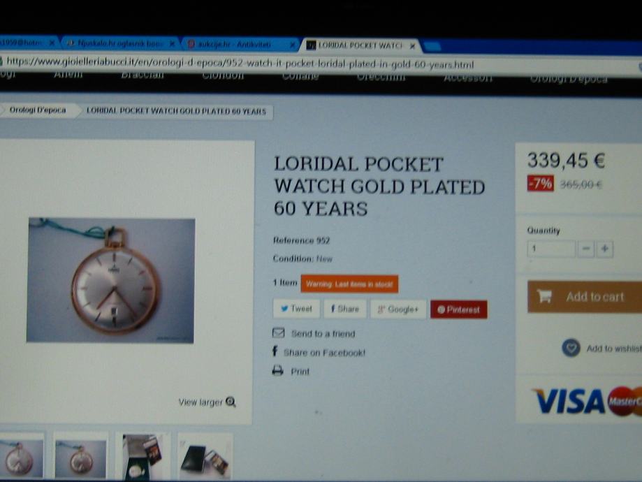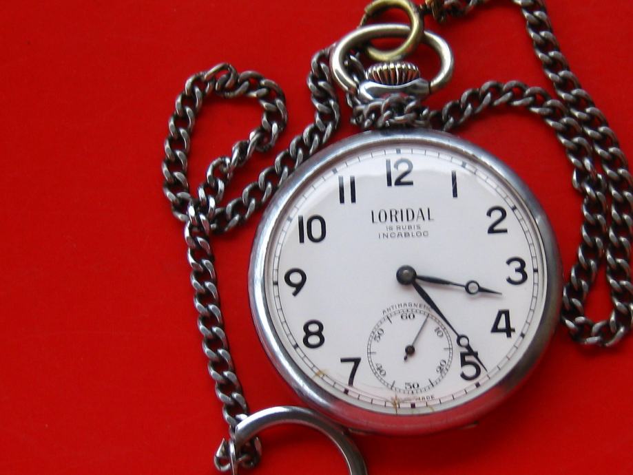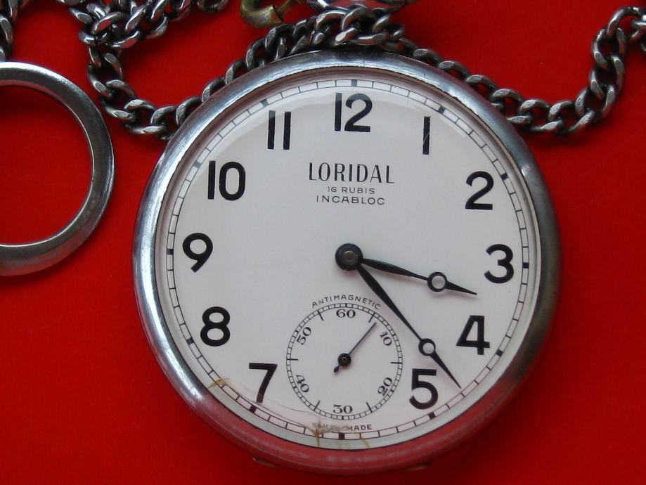 Rijetki, skupi željezničarski sat "LORIDAL" 16 RUBIS...SWISS. 1960. godina....promjer 49,5 mm bez vrata i krunice..lančić..MEHANIZAM UNITAS 6431-5445