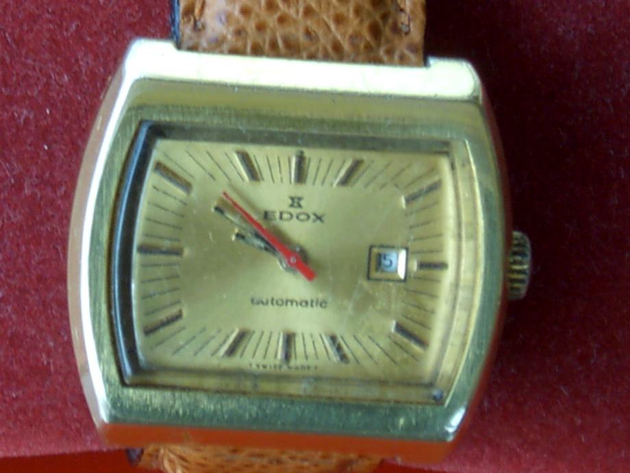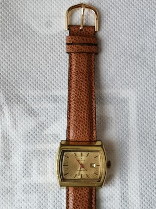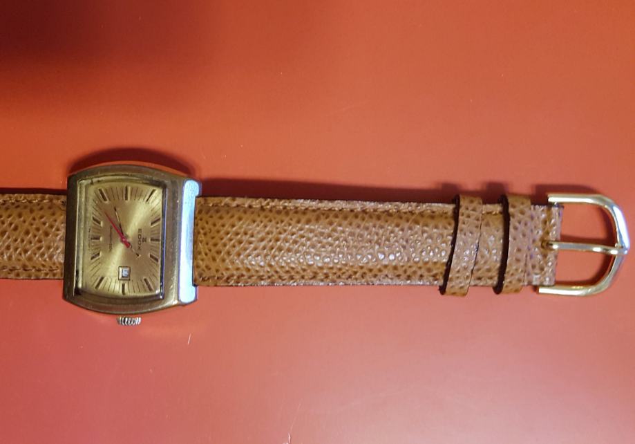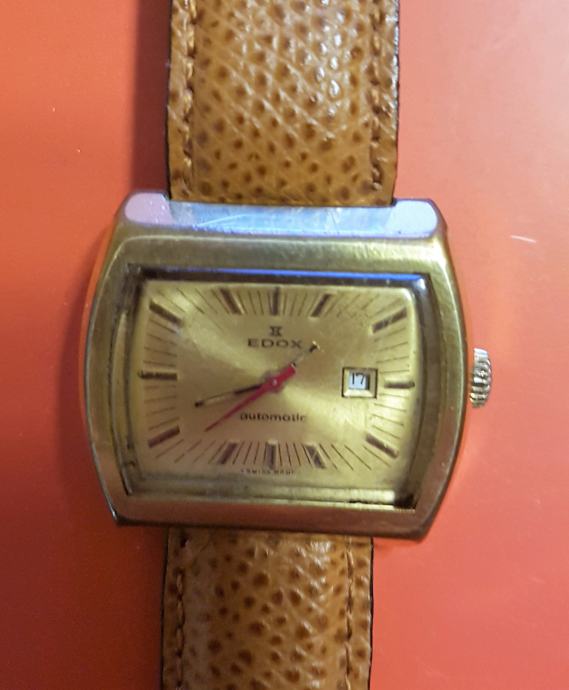IZNIMAN POZLAĆENI EDOX AUTOMATIC-SWISS MADE...MEHANIZAM ETA 2651-21 JEWELS...1971. GODINA...DATUM...SHOCKRESISTANT-WATERRESISTANT...29488-9...BREV. DEM...ORIGINAL POTPISANA KRUNICA...NOVI REMEN...SAVRŠEN KOLEKCIONARSKI PRIMJERAK. 32x30 mm bez krunice..debljina 10mm...remen 18 mm...