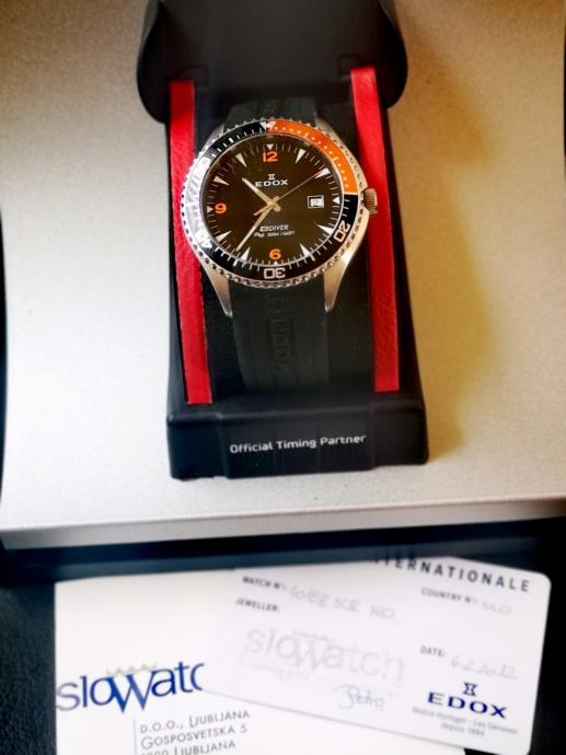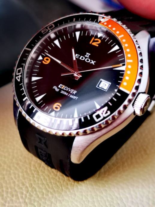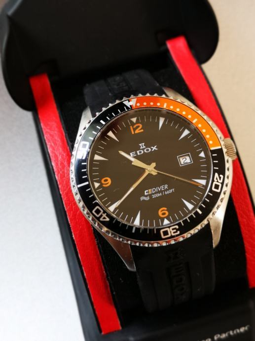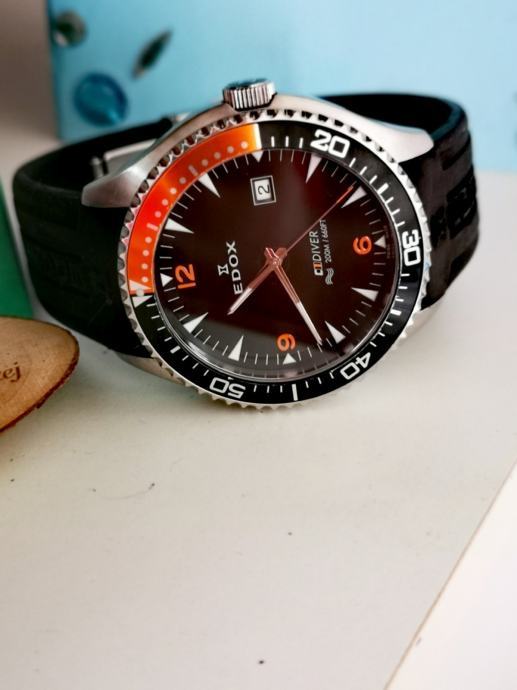 Prodajem Edox C1 Diver ref.70158, sat je u vrlo dobrom stanju, jedini vidljivi tragovi nosenja su po gumenom remenu i preklopnoj kopci, dolazi sa kutijom i papirima.