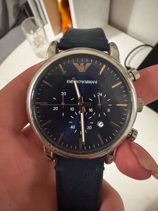 Armani muski sat, nema nikakvih ostecenja, radi uredno, remen je malo iznosen, potrebno staviti nove baterije