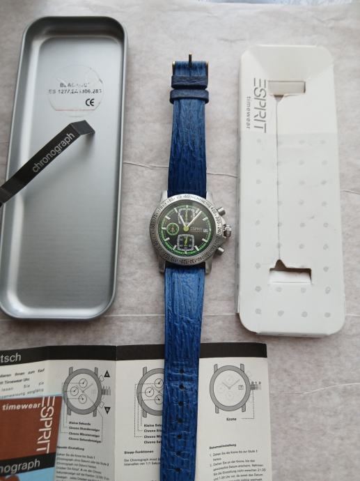 Esprit chrono blackout na slikama.Quartz uniseks (za manji zglob)nosen nekoliko puta ali bez ikakvih tragova nošenja.Ispravan kutija i papiri.Komuniciram sms-om dostavljam HP pouzećem.Ne cjenkam se.Zamjene ne trebam.