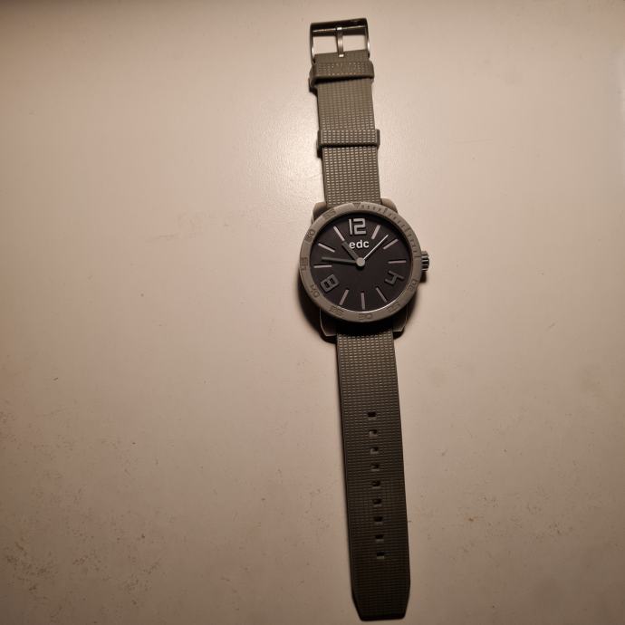 Prodaje se dobro očuvani muški ručni sat edc, promjera 52mm, narukvica gumena.