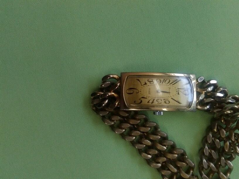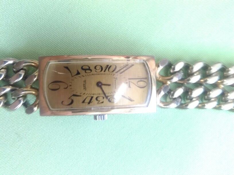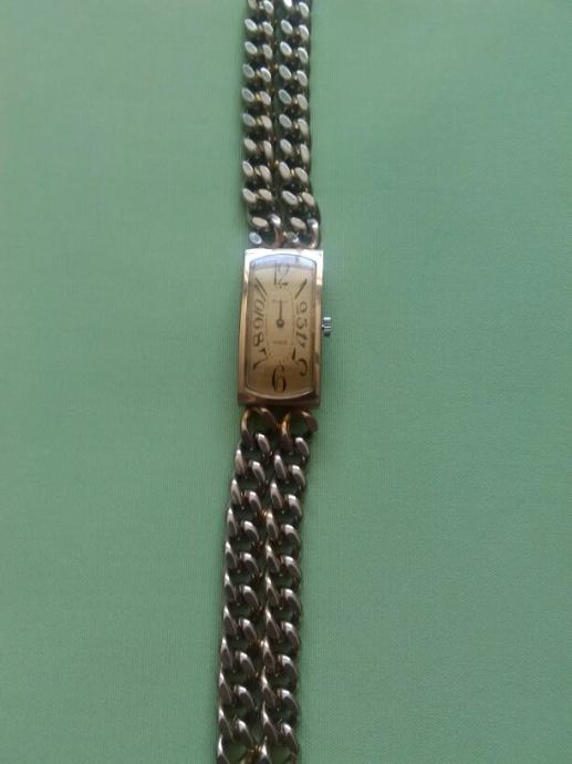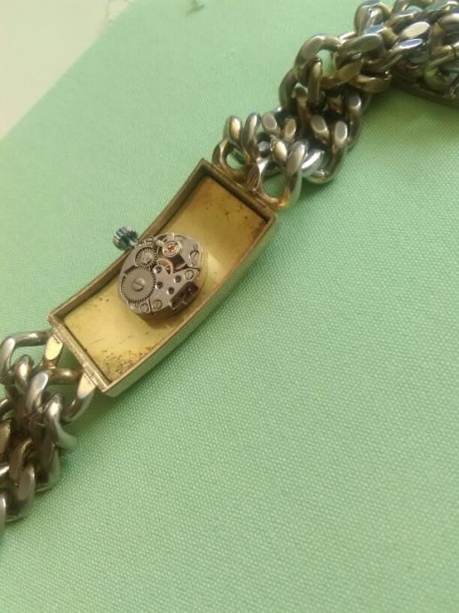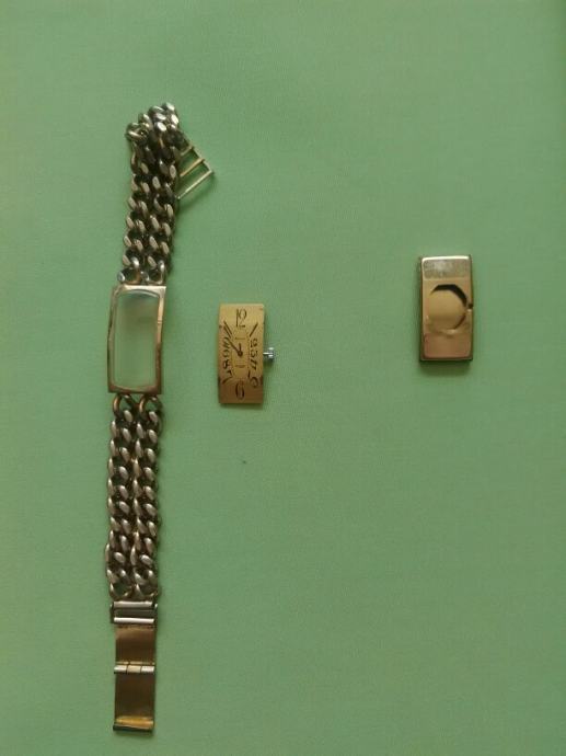 Radi se o satu narukvici iz 50tih godina kada je to bilo izuzetno moderno. Ima vrlo kvalitetan mehanizam smješten u kućištu 18x38cm.Sat je ispravan i saćuvan u dobrom stanju sa svim originalnim djelovima osim krunice (stavljena nova). Sat je u prirodi puno jasniji i ljepši ali mobitel nemože prenijet. Narukvica je za ogromnu mušku ruku.