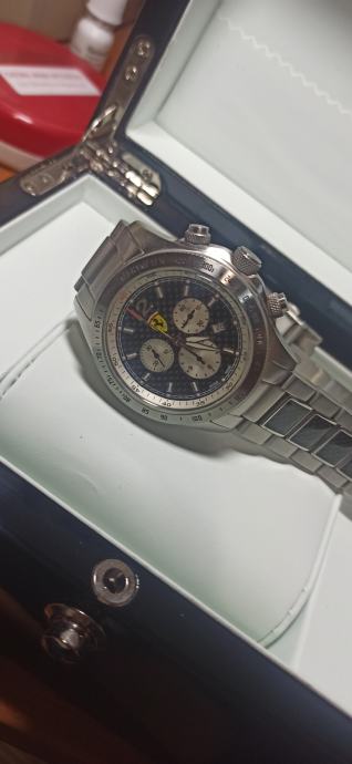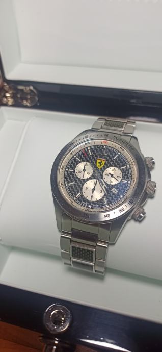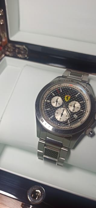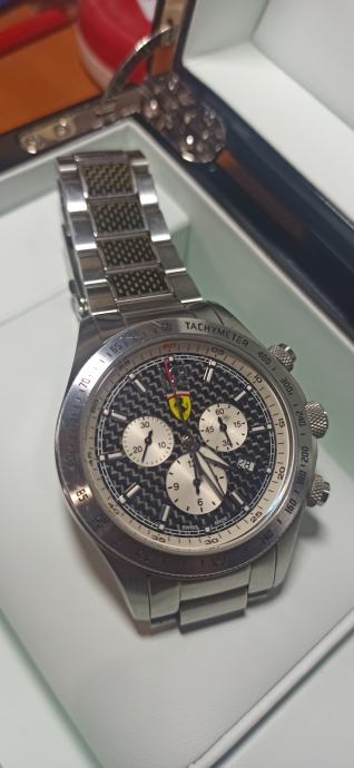 Prodajem prekrasan Švicarski sat Ferrari Scuderia Ronda 5030 D Najskuplji model s kabonskim dodacima na ciferu i remenu. Omiljen sat među kolekcionarima robustan s najkvalitetnijim materijalima iz tog vremena mineralno staklo,karbon, čelik što mu osigurava trajnost i pouzdanost.