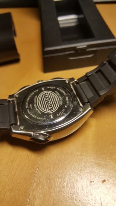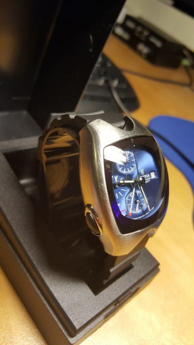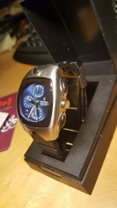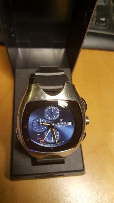 Prodaje se rijetka Festina 16044/03 special edition festina bike team muški sat s kronografom i alarmom. Sat ima zamjenski gumeni remen. Vide se tragovi korištenja, ali je sat potpuno ispravan.