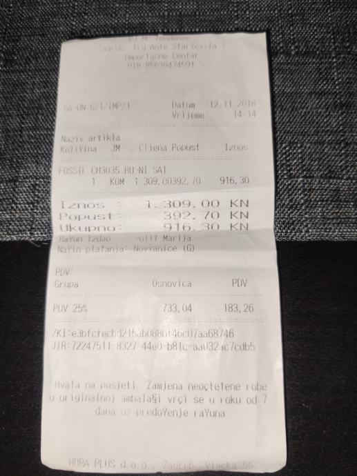 Prodajem navedeni ručni sat. Sat je gotovo ne nošen i bez tragova korištenja. Kupljen je u 11. mjesecu 2018. i od tada stoji. Trenutno treba novu bateriju. Posjedujem račun i kutiju. Mogu poslati poštom a najbolje osobno preuzimanje Kutina, Zagreb po dogovoru.