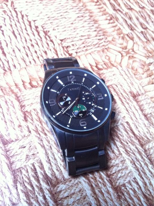 Fossil crni sat..nosen par puta doslovno,nema ni crticu..uz sat dode kutija i sve potrebno..sat je kupljen u avenue mallu i placen 999kn!