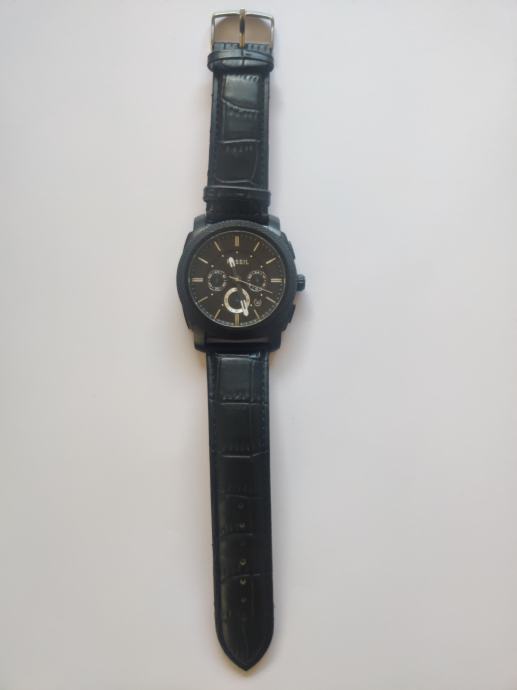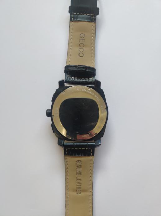 Očuvan sportski sat. Crni sa sitnim plavim detaljima. Jako lijep uživo. KOŽNA NARUKVICA! Za veću mušku šaku.